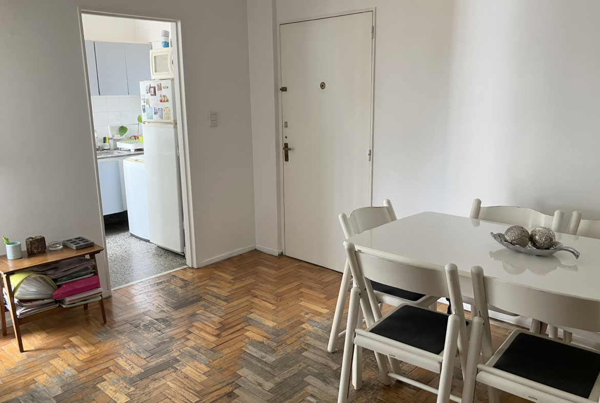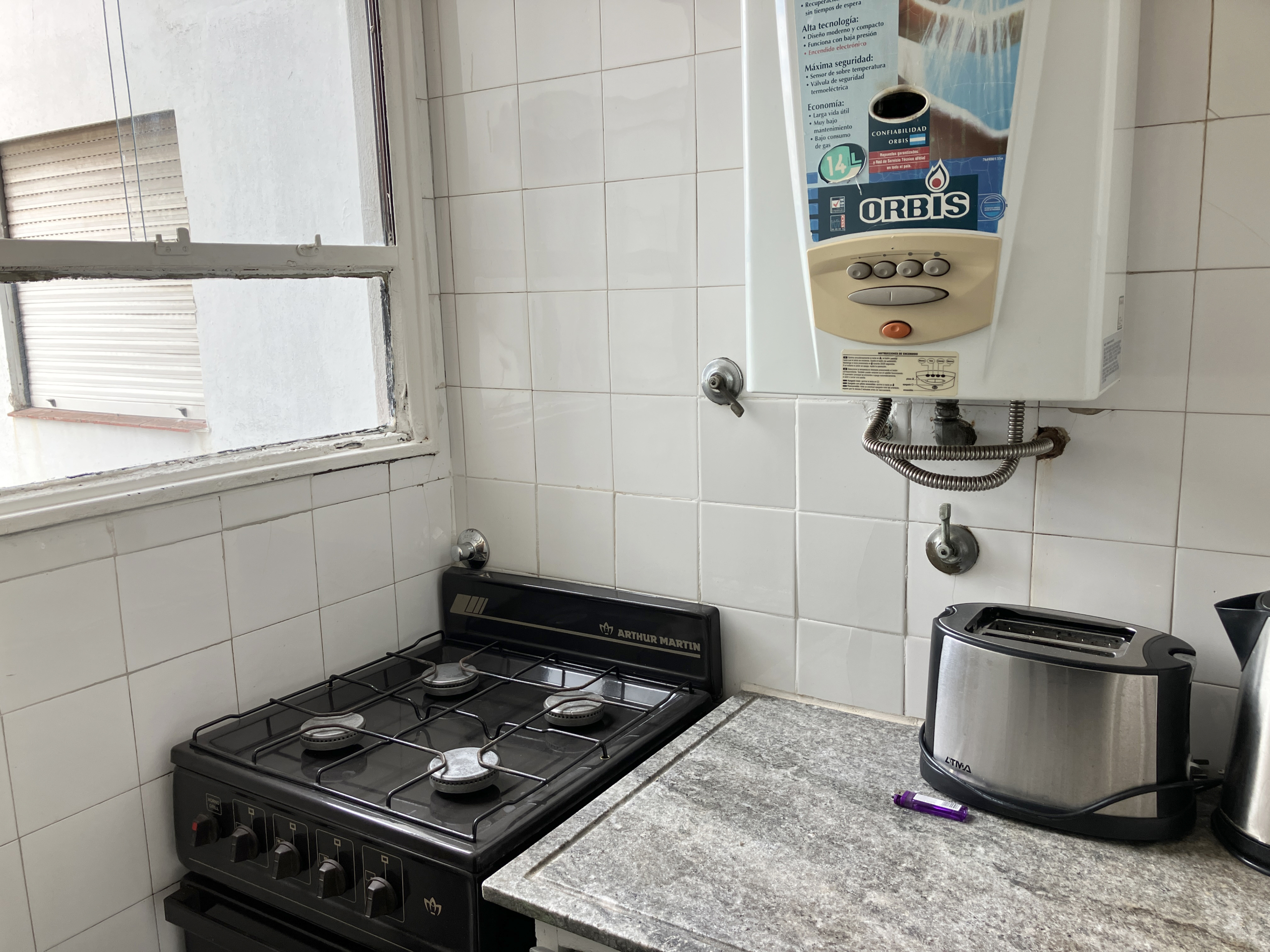 Living-comedor con balcon frances, pisos de parquet, habitacion con placard muy comodo, baño completo con bañera, luz y ventilación, placard en hall de distribución, cocina con mesada de marmol y calefon, espacio para lavarropas con todas sus conexiones, edificio con dos ascensores.: