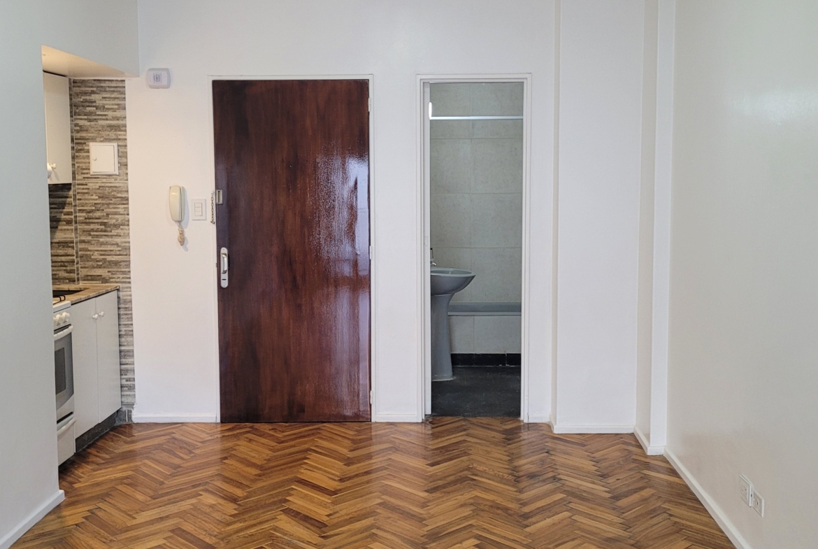 Monoambiente totalmente reciclado, contrafrente, excelente ubicación, luminoso, balcon frances, baño completo