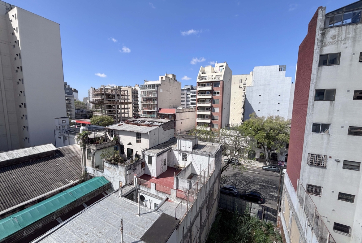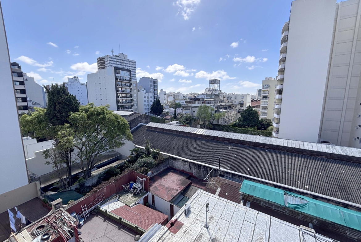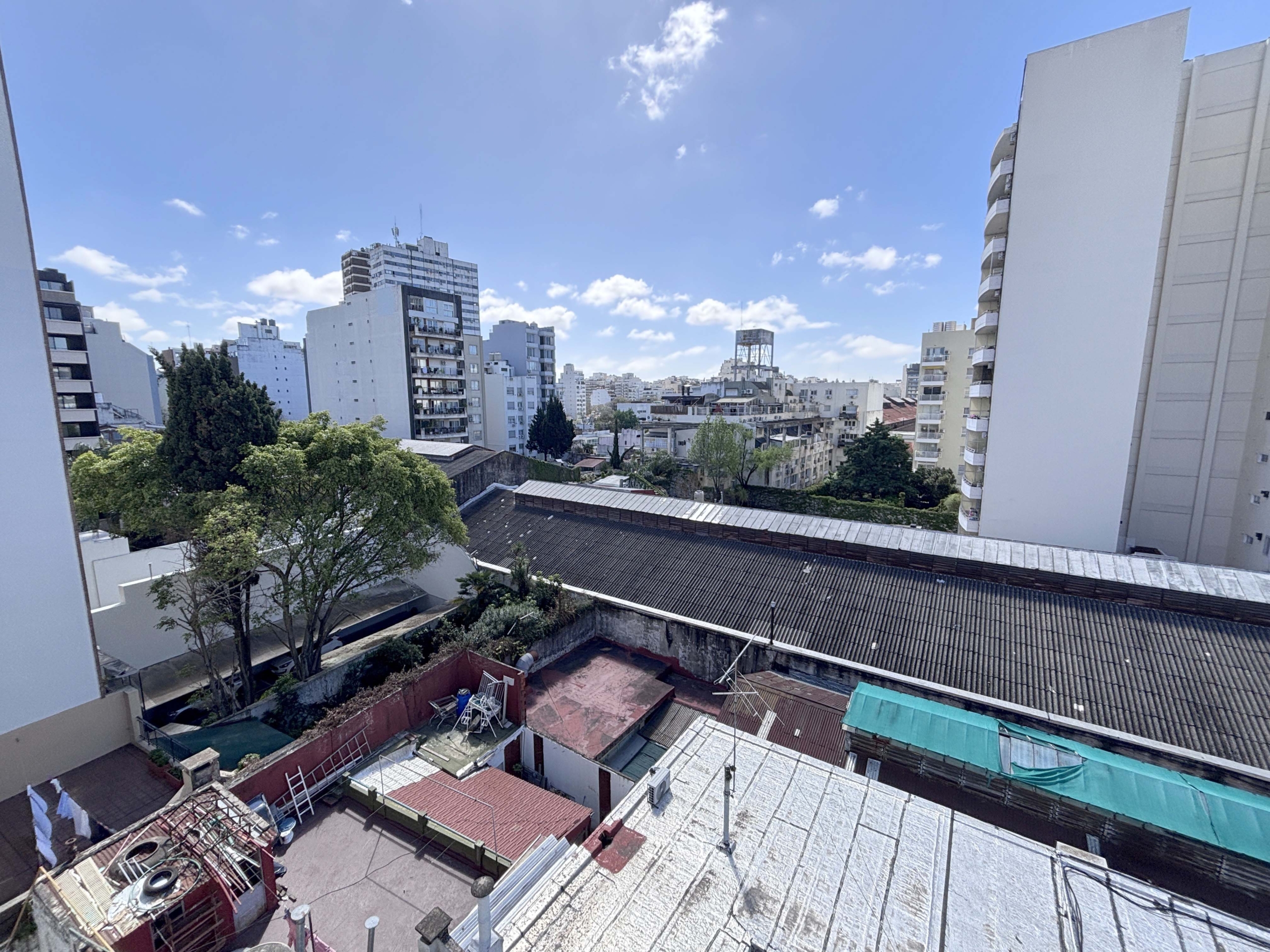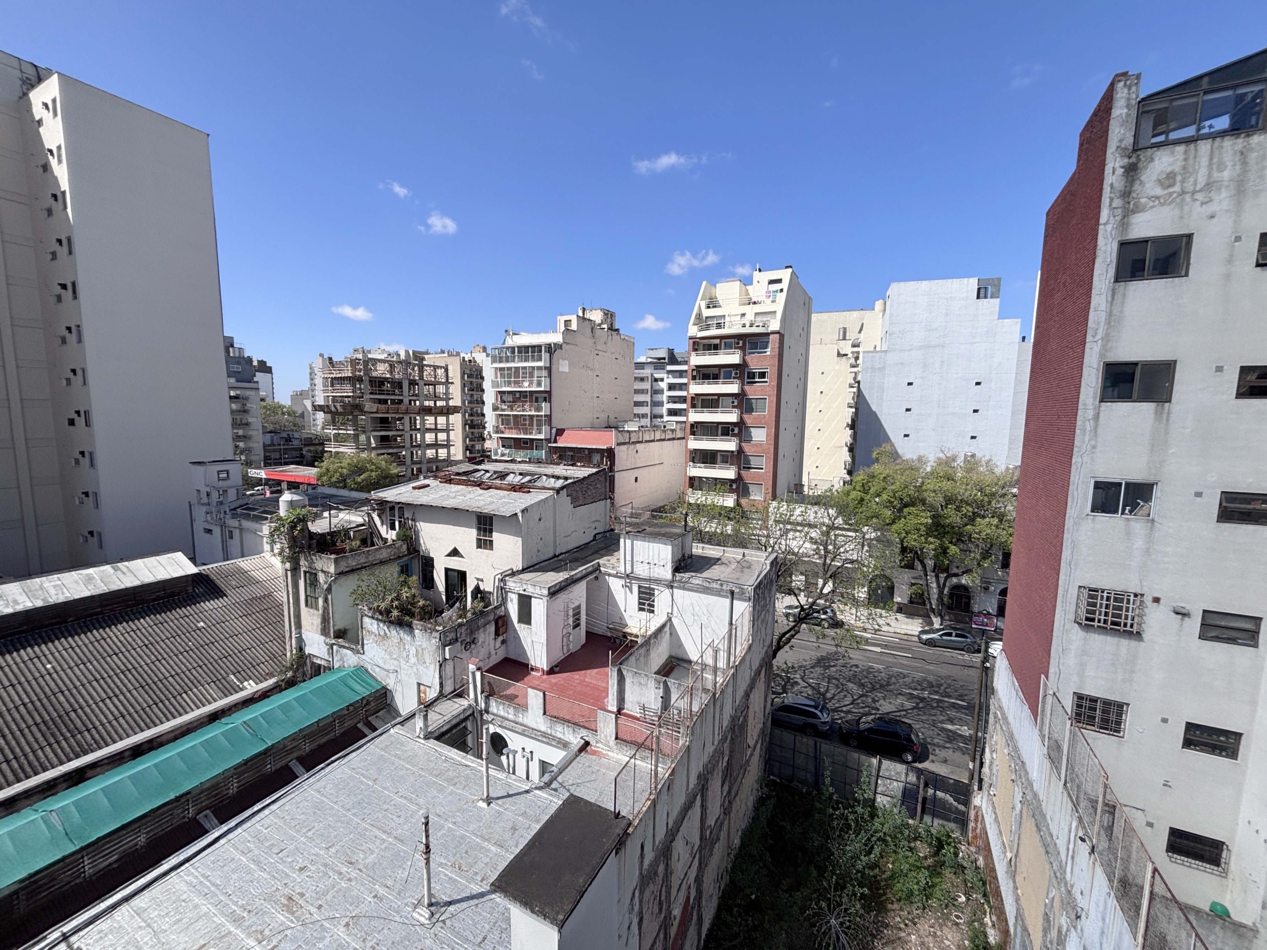 Caballito 2 ambientes contrafrente, con balcon y cochera, vista abierta, cocina integrada, mesada marmol y bacha acero, espacio lavarropas, alacena y bajo mesada, cocina electrica con horno, baño completo, split F/C dos deptos por piso, edificio de solo un año, ascensor automático, pisos ceramica simil madera, placard en habitacion, agua caliente central, excelente estado.: