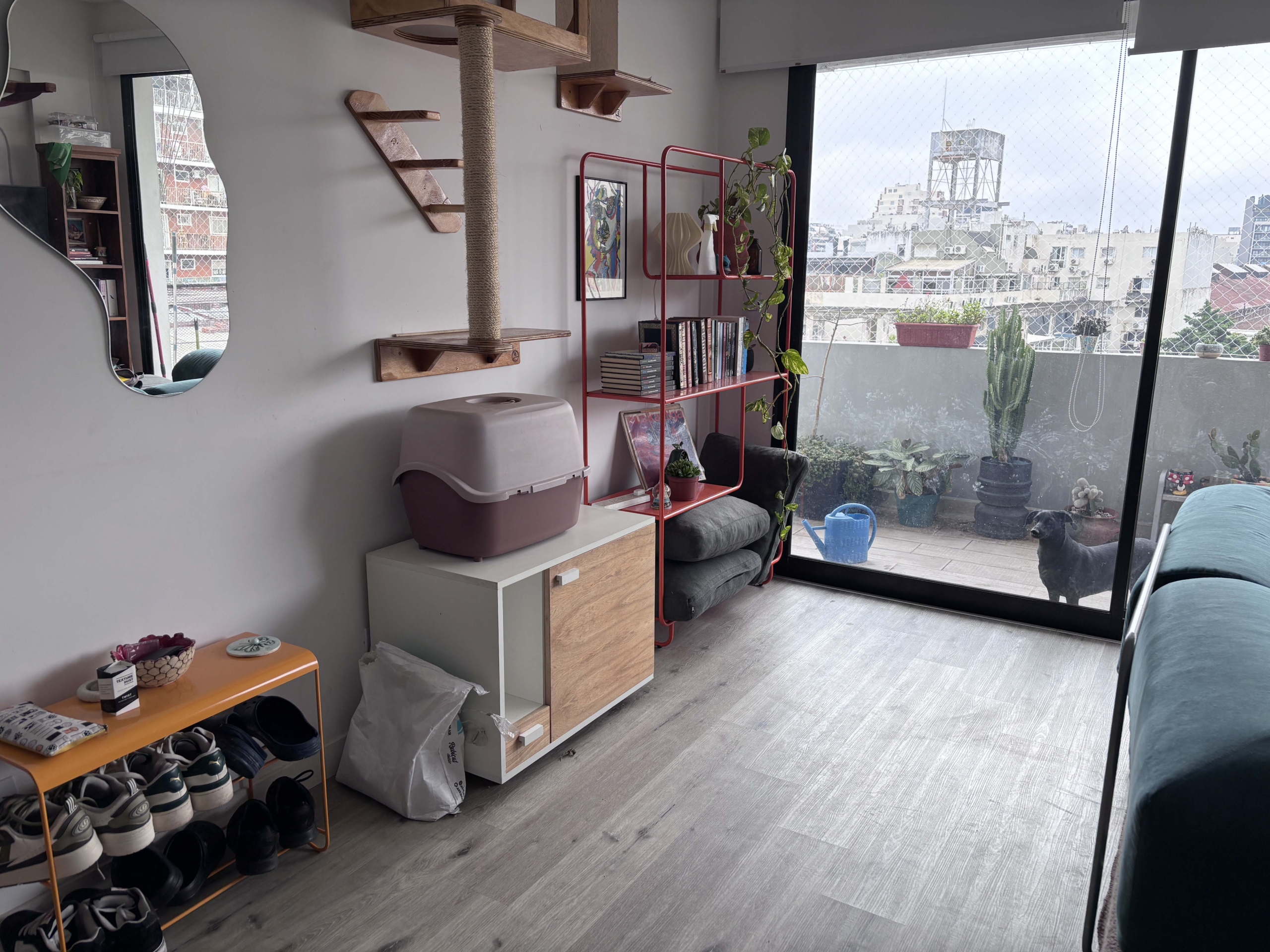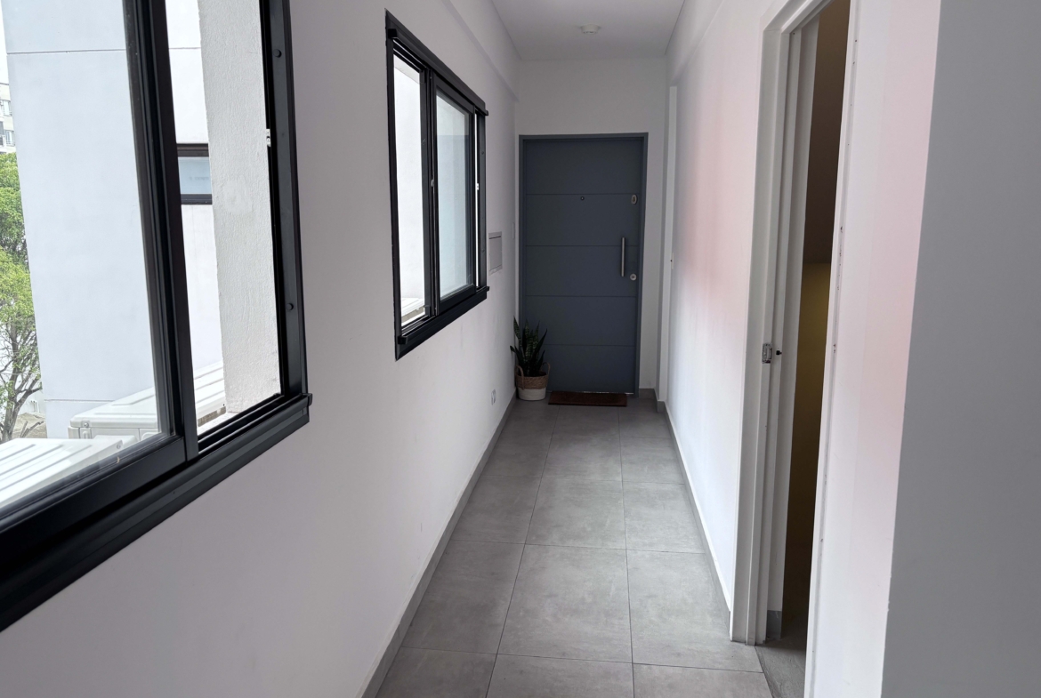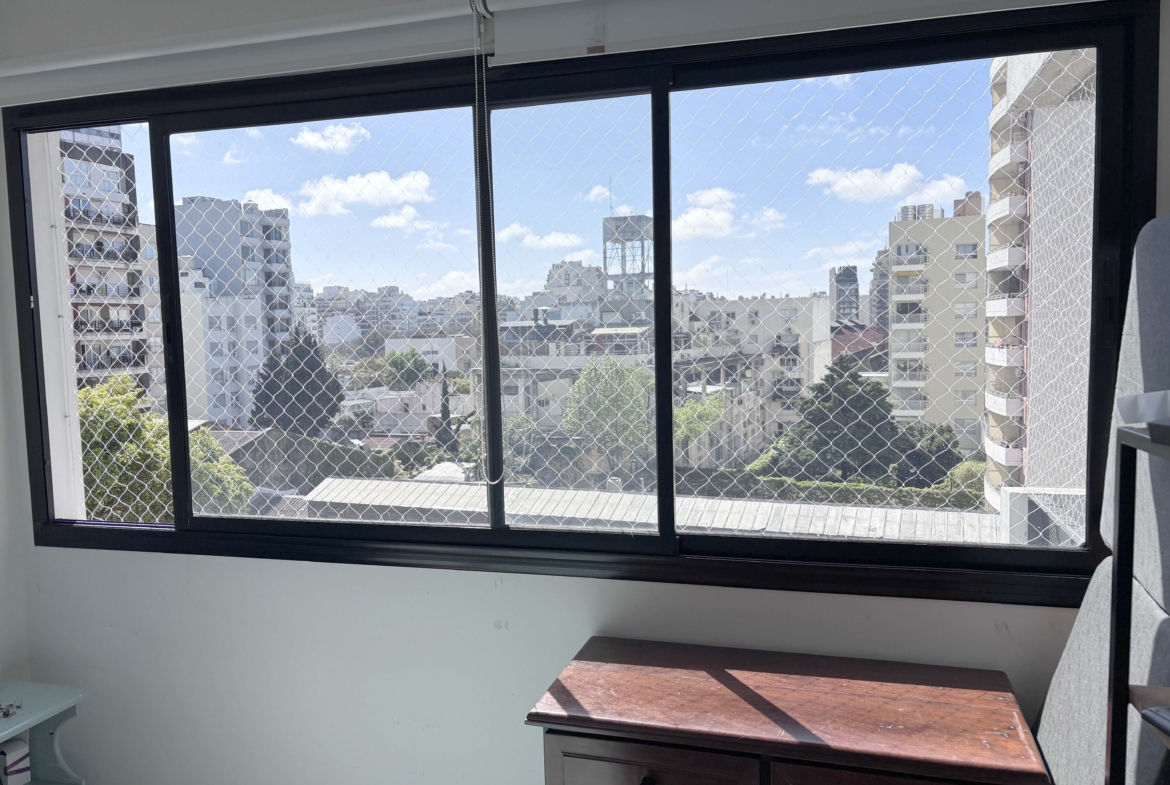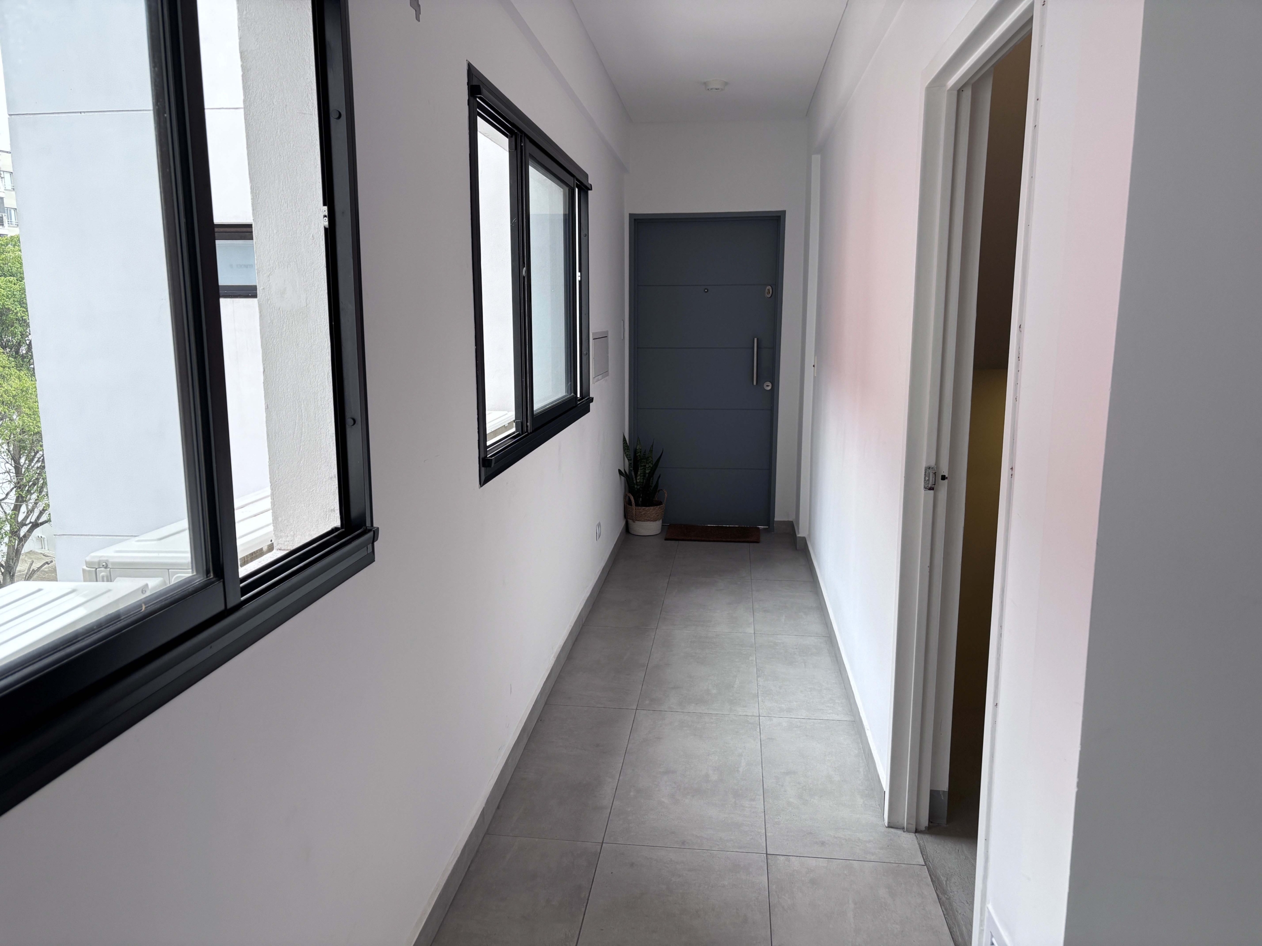 Caballito 2 ambientes contrafrente, con balcon y cochera, vista abierta, cocina integrada, mesada marmol y bacha acero, espacio lavarropas, alacena y bajo mesada, cocina electrica con horno, baño completo, split F/C dos deptos por piso, edificio de solo un año, ascensor automático, pisos ceramica simil madera, placard en habitacion, agua caliente central, excelente estado.: