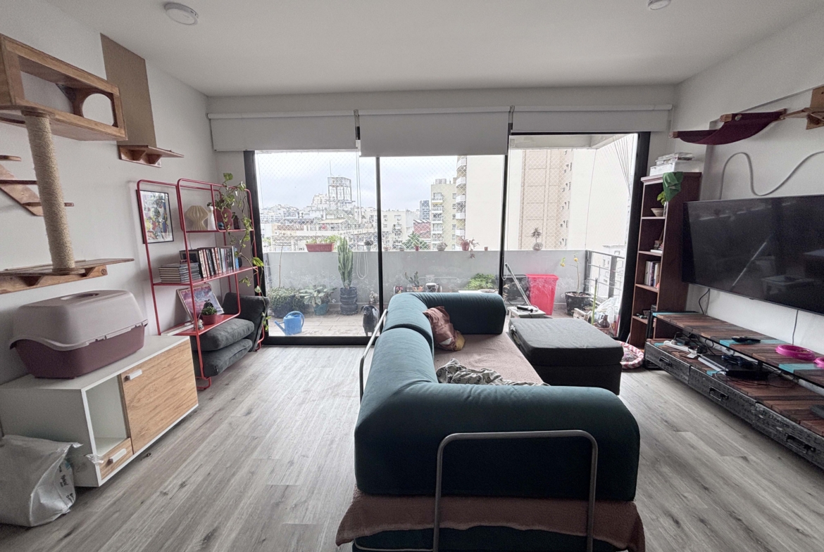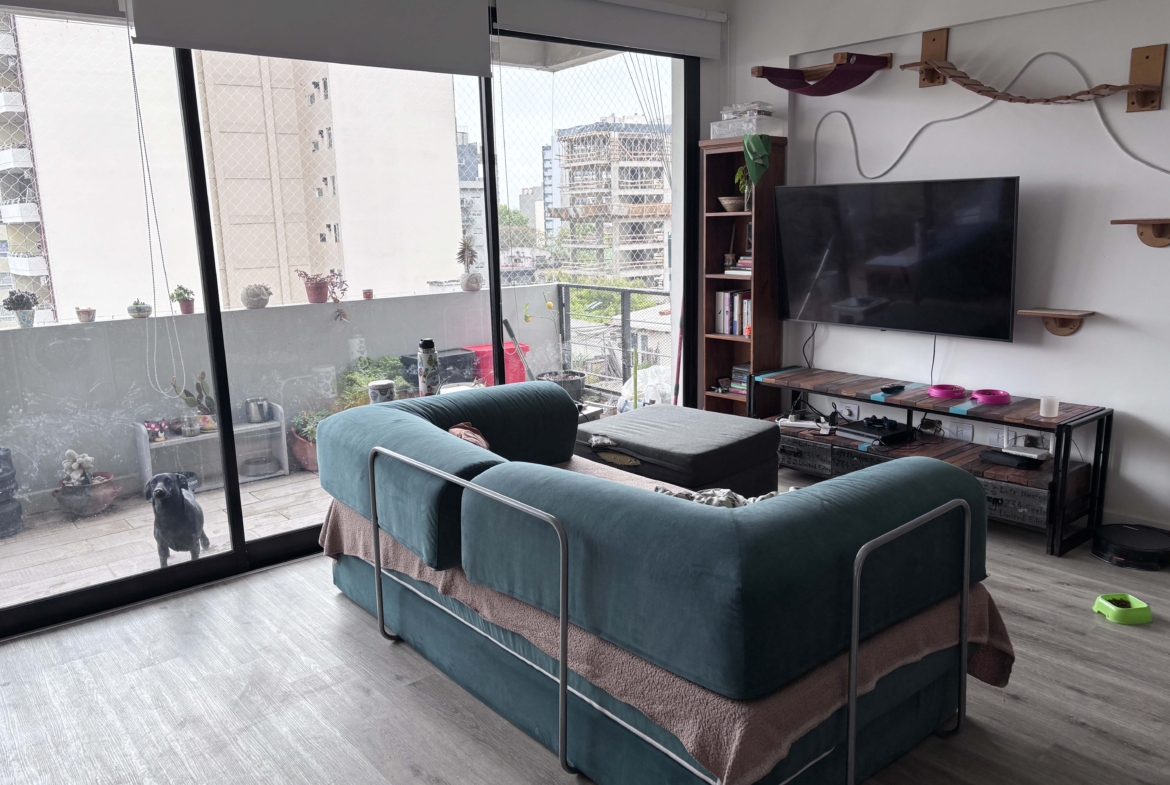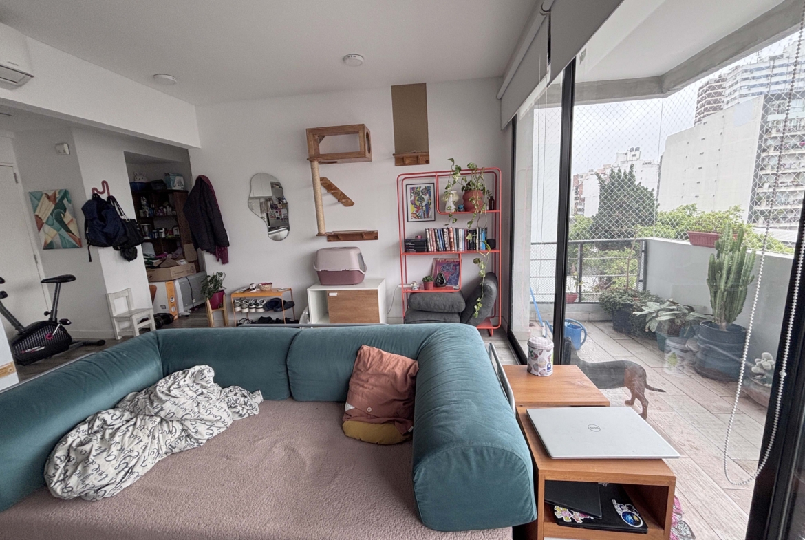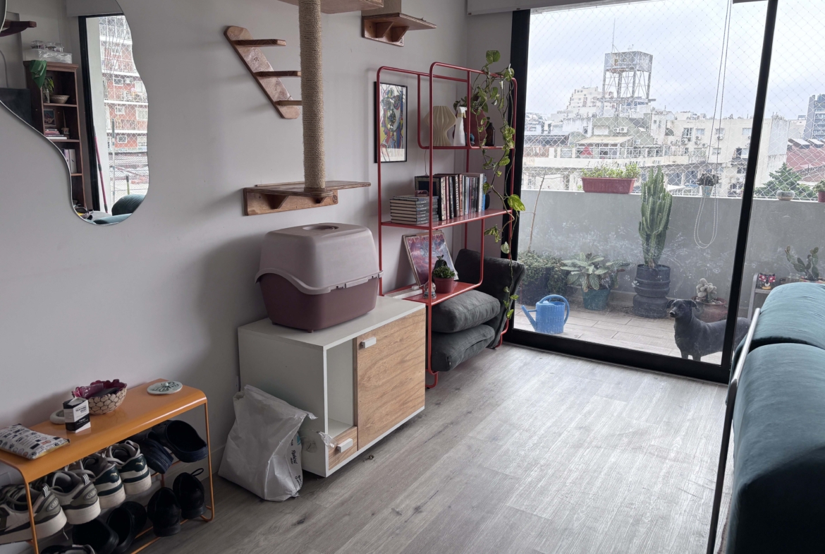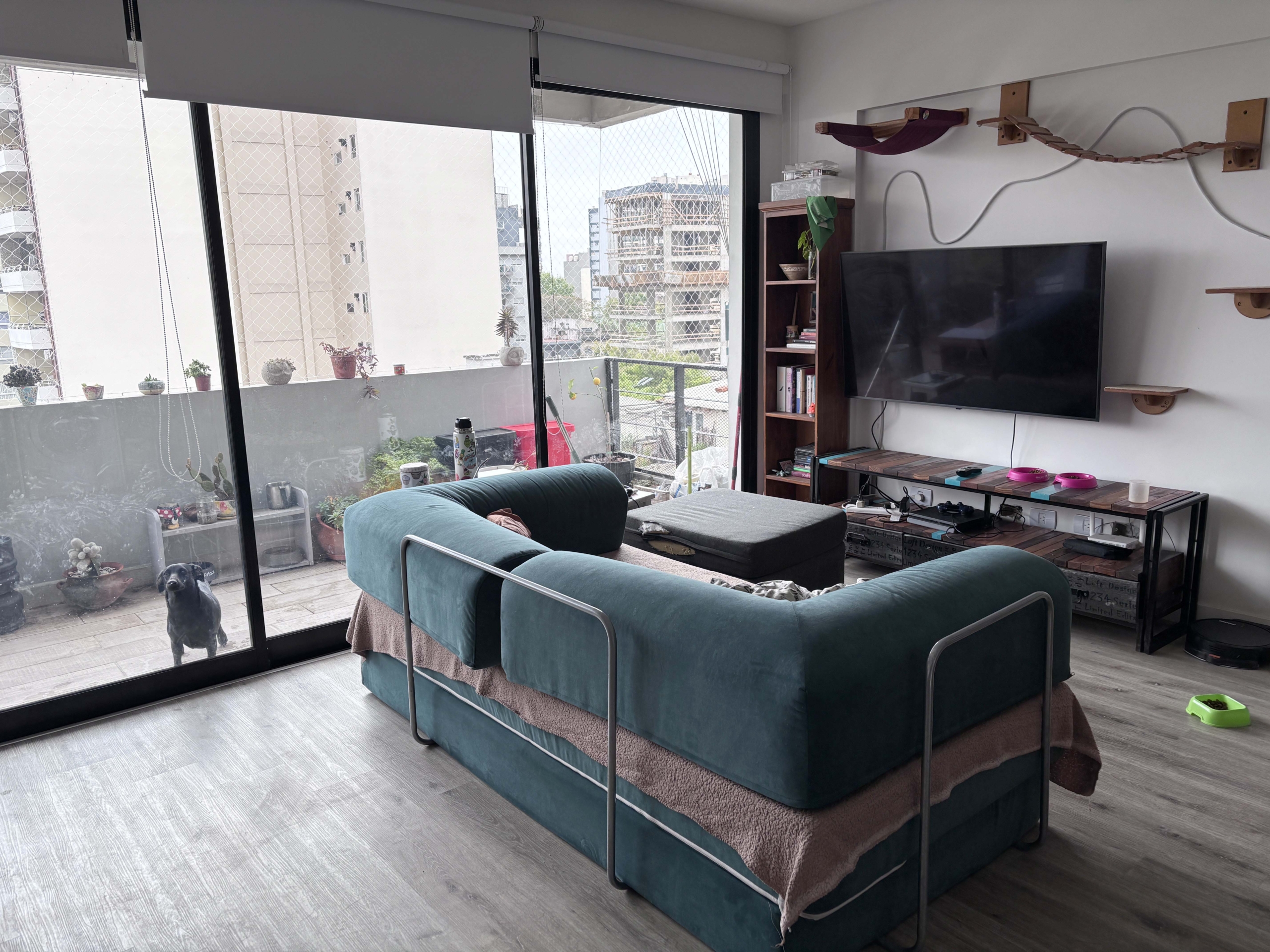 Caballito 2 ambientes contrafrente, con balcon y cochera, vista abierta, cocina integrada, mesada marmol y bacha acero, espacio lavarropas, alacena y bajo mesada, cocina electrica con horno, baño completo, split F/C dos deptos por piso, edificio de solo un año, ascensor automático, pisos ceramica simil madera, placard en habitacion, agua caliente central, excelente estado.: